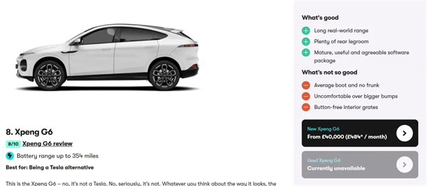 根據戴倫·凱西的分析,等歐洲傳統汽車大廠回過神來。"中國品牌汽車早已擺脫'廉價'的固有標簽。如今,中國車企推出的車型大多能與英國、歐洲、日本及韓國的競品勢均力敵。比如,坐進比亞迪海豹或小鵬G6車內,你會為其呈現的品質感到驚艷。"Carwow的榜單列舉了最受英國消費者歡迎的10款中國汽車。