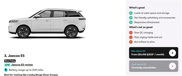 從這份測評榜單來看,目前,"毒舌"的英國媒體還是把中國汽車作為歐系或是日系暢銷車的"平替"來看待。比如,奇瑞的Jaecoo E5被稱為寶寶版路虎攬勝極光;MG HS是豐田RAV4的"最強平替"。小鵬G6則被視作特斯拉的替代選擇。如果暫不考慮未來關稅或其他保護性政策的因素,明年,"平替"的標簽只會讓中國汽車更受歡迎。一方面,英國國家經濟與社會研究所(NIESR)表示,"今年下半年,英國的通脹預期仍處于高位,同時,勞動力市場已出現閑置跡象。"在這樣的經濟形勢下,"平替"將大行其道。